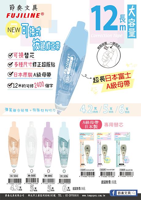 12米大容量按鍵式修正帶